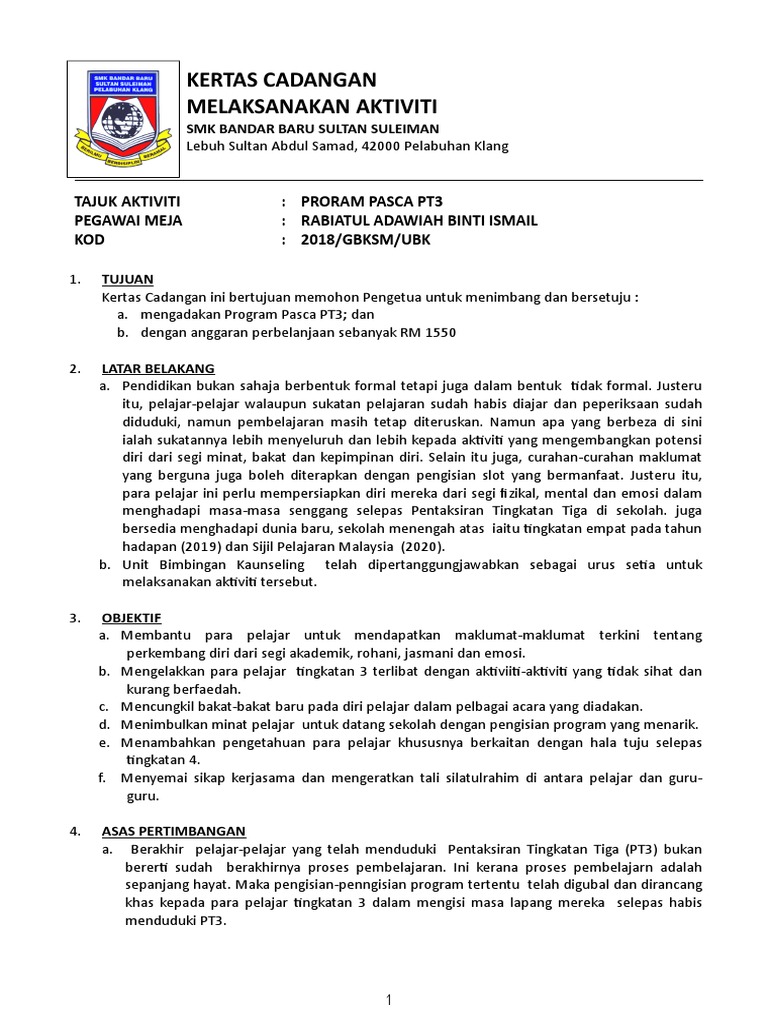 03 Kertas Cadangan Pelaksanaan Program Pdf